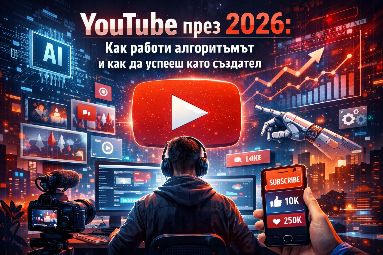 През 2026 година YouTube вече не е място, в което хората просто качват видеа и чакат да бъдат гледани. Това е интелигентна екосистема, изградена върху изкуствен интелект, поведенческа аналитика и дълбоко разбиране на човешкото внимание. Алгоритъмът не награждава случайността. Той награждава смисъла, последователността и реалната стойност за зрителя.